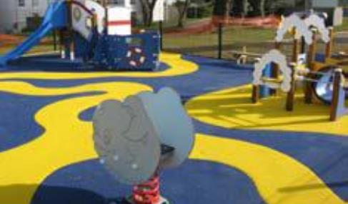 Divers équipements composent l’aire de jeux: jeux sur ressort dauphin et baleine, phare, étoile filante et petit bateau!