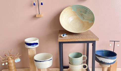 Bienvenue à l’Atelier-Boutique MICA pour découvrir l’espace de tournage, et de façonnage de bijoux. Line Garnier - poteries artisanales pour la table et la décoration, aux formes organiques et couleurs d’émaux rappelant le littoral proche - initiation au tournage Aurélie Blanz - Bijoux en grès et porcelaine, fins et élégants. Inspiré de la beauté de la nature, et du monde marin breton.