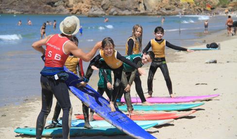 Toute l'année, la 1ère école de surf et de Stand Up Paddle du Cap-Sizun vous accueille sous forme de baptêmes de surf, de stages (dès 5 ans), cours particuliers ou simple location de matériel. A la Baie des Trépassés : tous les jours en été pour les stages et la location. A Audierne : depuis la Surf Room pour les réservations à l'école de surf. Les produits phare de l'ESB : le baptême de surf, le jardin des vagues, et le stage semaine de surf.