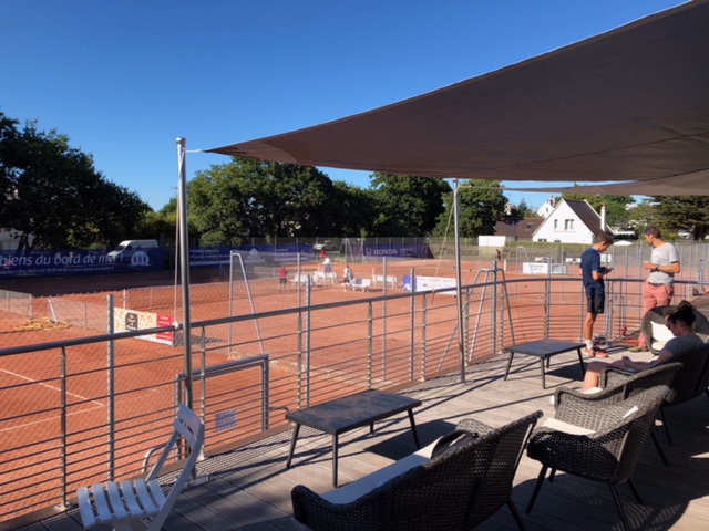 A deux pas de la plage, le tennis-club de Fouesnant met à votre disposition de mi-juin à début septembre, cinq superbes courts en terre battue,un cours de Padel et un sympathique club-house avec sa terrasse donnant sur les courts où vous pourrez à loisir vous désaltérer et vous reposer. Nous vous accueillons (Juilllet et Août) chaque jour de 9h00 à 20h00 et nous vous proposons différentes possibilités de locations : à l’heure, par carte de 5h, 10h ou plus. D’autre part, Mikaël et Fabien– nos brevetés d’état – seront prêt dès le début juillet pour vous dispenser des cours : soit à l’heure, soit à la semaine (en cas de mauvais temps, les cours seront assurés dans la salle du tennis club à Fouesnant près des Balnéïdes). Pour réserver un cours et connaitre les tarifs : http://www.tennisclub-fouesnant.fr/
