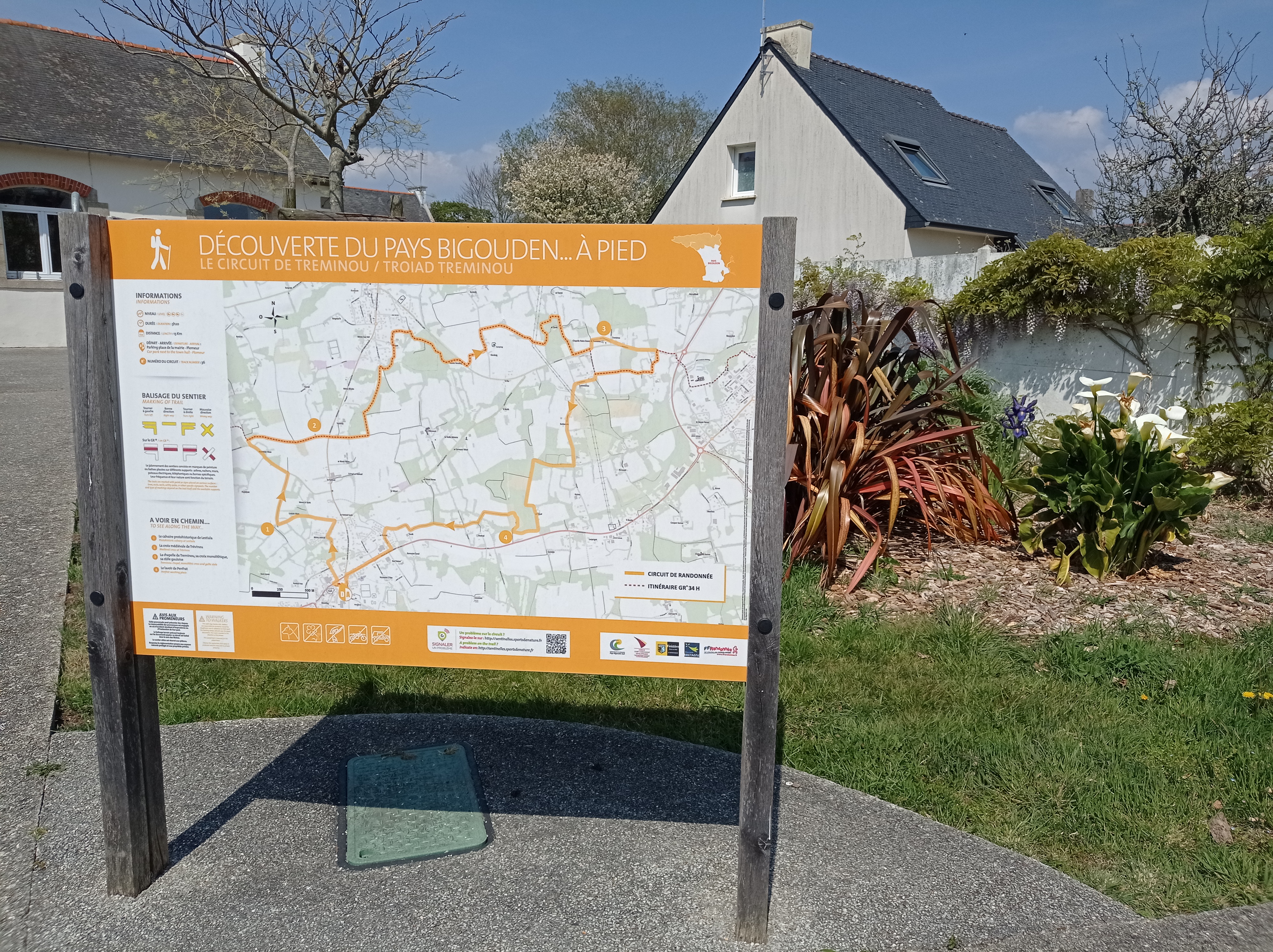 Randonnez dans la nature et découvrez la chapelle de Tréminou. Ce circuit va vous emmener dans la campagne de Plomeur pour une randonnée en toute quiétude. Vous découvrirez notamment la chapelle de Tréminou et son histoire. Départ/Arrivée : Parking de la mairie à Plomeur Balisage : PR jaune et GR® de Pays jaune-rouge Le balisage terrain prévaut toujours sur les documents papier ou numériques. Dénivelé : 129,5m Sens de l'itinéraire : Horaire Vigilance : Traversées et cheminement de routes passantes (D57 et Quelourdec) Infos pratiques : -Une aire de pique-nique est présente au niveau de la chapelle. -Toilettes publiques disponibles à côté du parking Conseils avant de partir : Équipez-vous bien avant le départ : boisson, en-cas, sac pour emporter vos déchets. Avis aux promeneurs : -Afin de respecter l’intégrité du milieu naturel que vous traversez, il est primordial de fixer des embouts caoutchoutés sur les pointes de vos bâtons. -Votre responsabilité de promeneur est engagée en cas d’accident résultant d’imprudence ou d’inattention de votre part. -Restez discret et courtois avec les autres usagers ou les riverains. Randonner avec son chien : -Les chiens sont les bienvenus sur ce circuit. -Soyez prudents, le circuit traverse des routes passantes et des zones d'agglomération, votre chien doit être tenu en laisse. Afin de visualiser les variantes et le tracé en détails, nous vous conseillons de télécharger une application lisant les fichiers GPX (openrunner, gpx viewer ou tout autre application de lecture de fichiers gpx de votre choix).