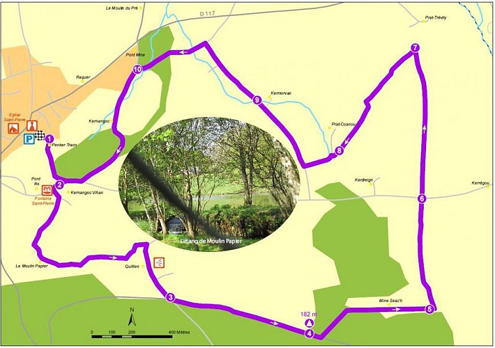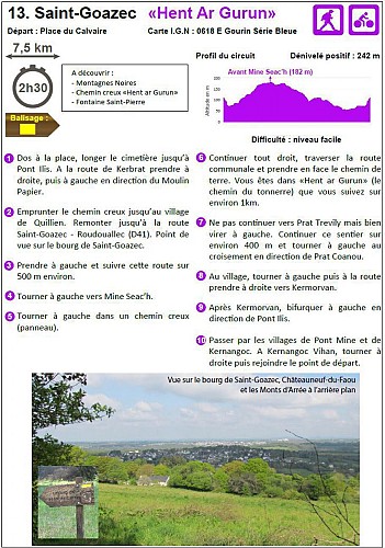 Départ : Place du Calvaire Carte I.G.N : 0618 E Gourin Série Bleue Dénivelé positif : 242 m Difficulté : niveau facile Balisage : jaune