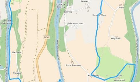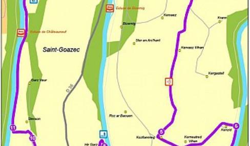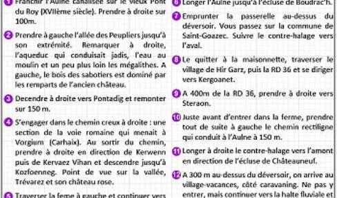 Départ : Penn ar Pont - Contre halage sous le pont de la D 36 Carte I.G.N : 0618 OT, Châteauneuf-du-Faou, Vallée de l'Aulne, PNR d'Armorique Top 25 Dénivelé positif : 172 m Difficulté : Peu accidenté à part la côte de Pontadig Balisage : Bleu