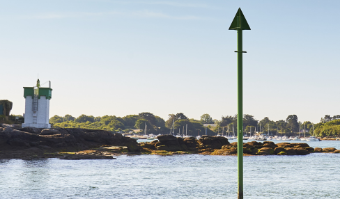 Situé sur la ria du Minaouët, la construction du phare a débuté en 1923, et servait de guide aux bateaux qui venaient des îles de Glénan (notamment l’île aux moutons, juste en face). L’accès à l’anse était assez dangereux, il a fallu créer un chenal pour éviter les roches émergentes. Le feu du phare, à l’éclat vert, s’illuminait toutes les 4 secondes et avait une portée de 8 miles nautiques soit 14,816 km.