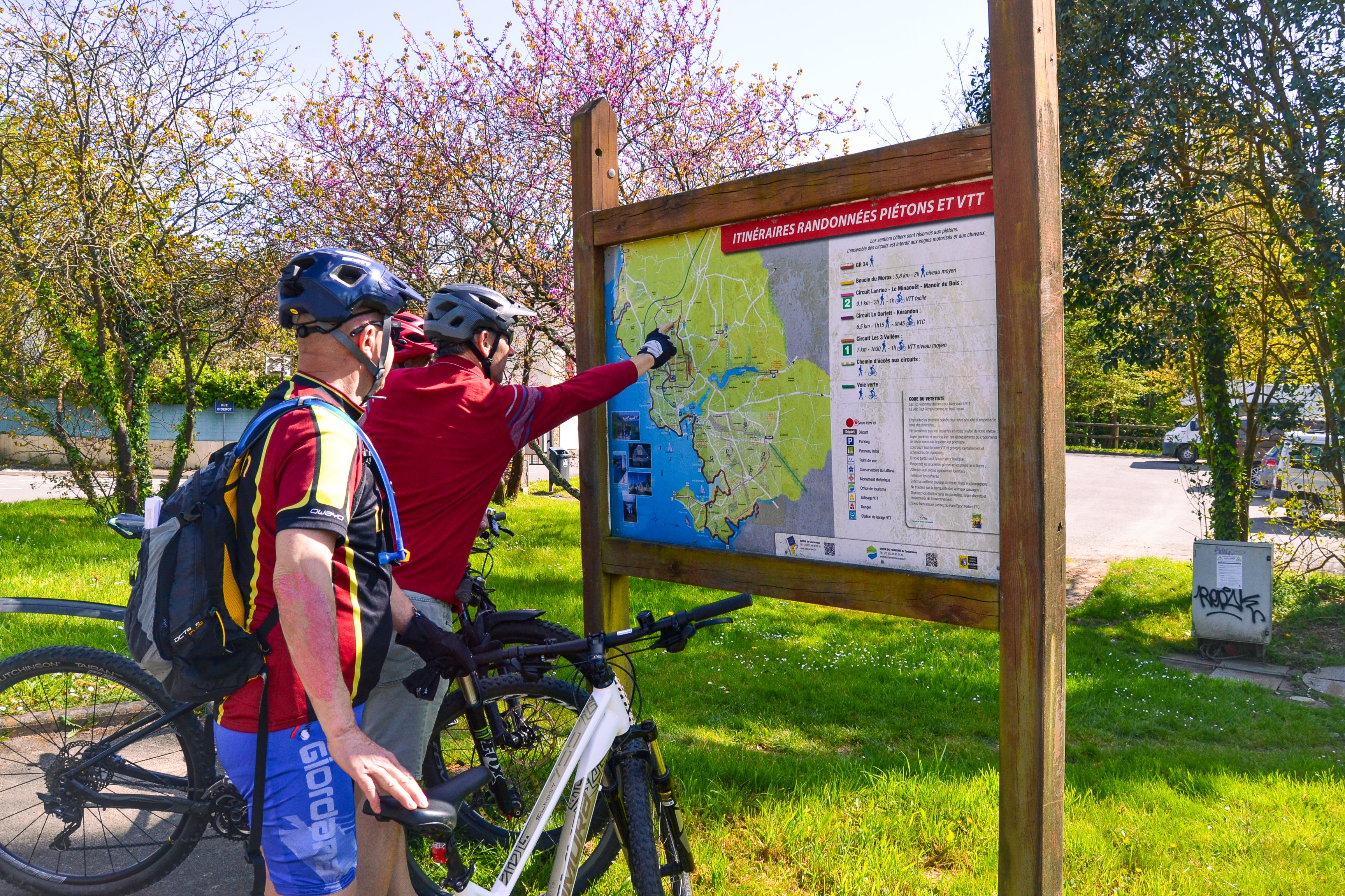 Vous trouverez le départ de cette promenade pédestre (1h30) ou V.T.T. (1h00) sur le parking face au collège des Sables Blancs, le long de la voie verte, à Concarneau. Des paysages boisés et semi-urbains se succéderont tout au long de votre randonnée.