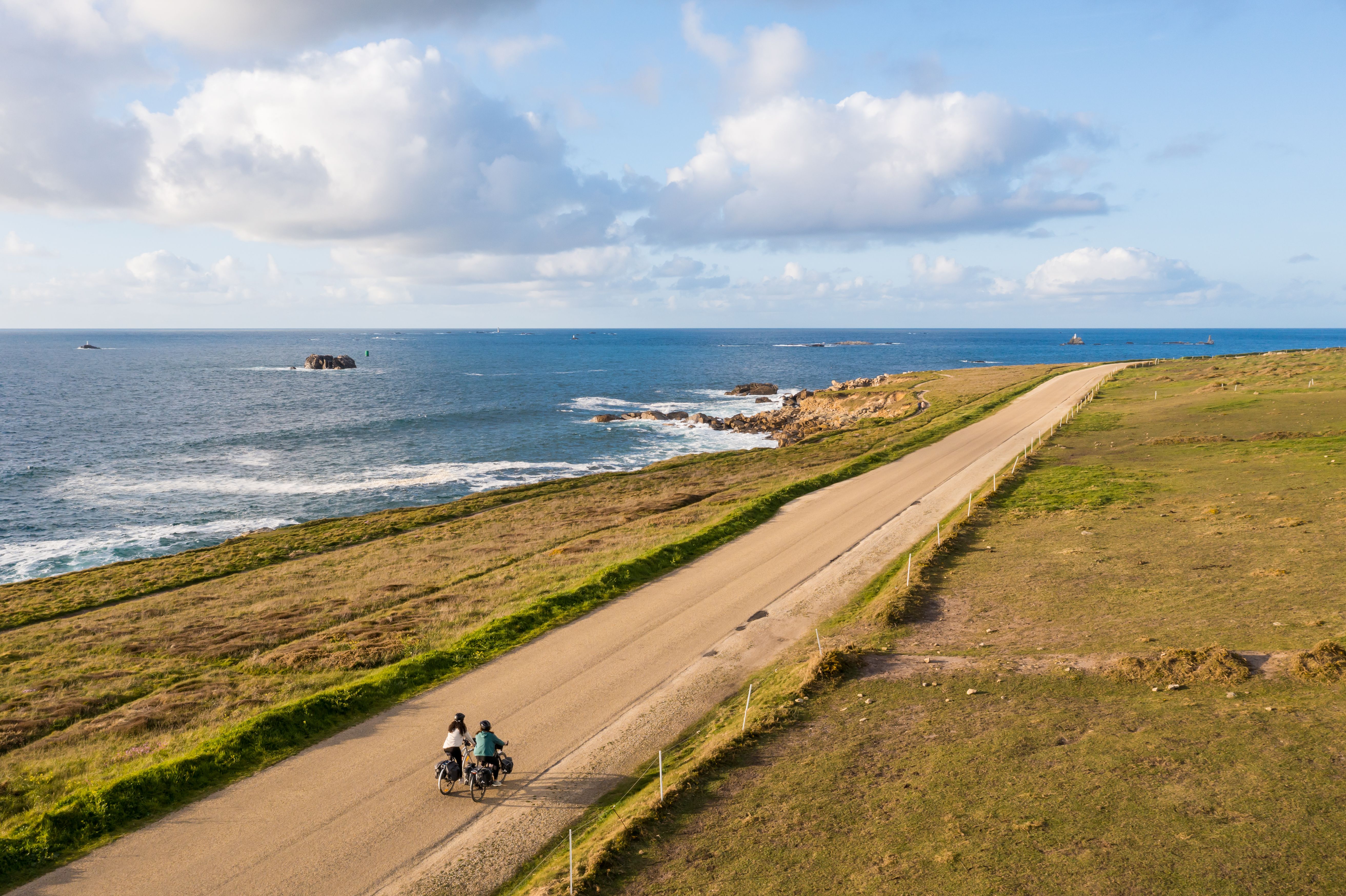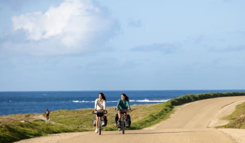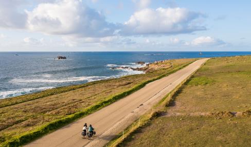 Après une visite de l'espace muséographique Ancre an eor - dans le sillage de l'Amoco Cadiz, direction le grand large et ses nuances de bleu en empruntant la route côtière de Landunvez. Des paysages maritimes ponctués de rochers et de dunes, de chapelles et de phares défilent comme dans un film. De Landunvez à Porspoder, l'air iodé donne l'énergie d'avancer ! Le phare du Four en pleine mer veille jour et nuit. A Lanildut, le pays des algues et du granite offre une étape bucolique. Un bac en service d'avril à octobre permet de rallier l'autre rive de l'aber en 5 minutes. Le tour de l'aber Ildut est également réalisable sur chaussidou jusqu'au joli bourg de Brélès. Un peu plus au sud, la pointe de Corsen offre un magnifique point de vue sur la fin du continent. Les falaises sont vertigineuses et pour les apprécier, on laisse ses vélos de côté pour une balade sur le sentier côtier. Pour finir la journée en beauté, cap sur le Conquet où la nuit sera étoilée. Points Accueil Vélo : - Office de Tourisme Iroise Bretagne au bourg de Ploudalmézeau - Point information touristique à l'intérieur de l'espace muséographique L'Ancre an eor à Portsall (entre avril et septembre) - Eco-Restaurant Le Château de Sable à Porspoder - Maison de l'Algue à Lanildut - Office de Tourisme Iroise Bretagne à Plouarzel - Office de Tourisme Iroise Bretagne au Conquet