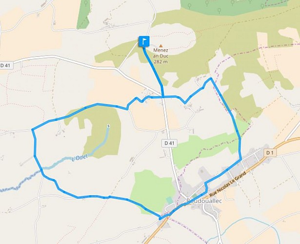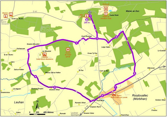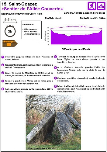 Départ : Allée couverte de Castel Rufel Carte I.G.N : 0618 E Gourin Série Bleue Dénivelé positif : 154 m Difficulté : pas de difficulté Balisage : orange