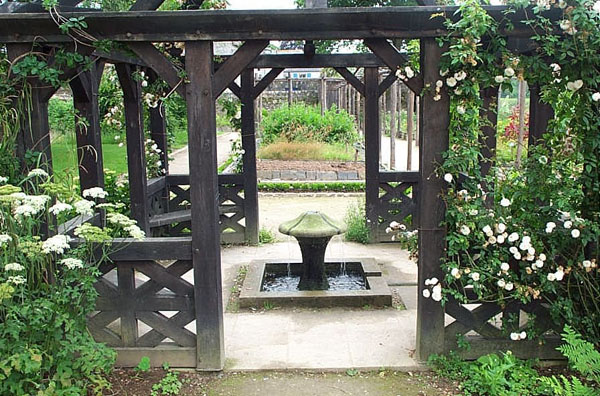 Au milieu du jardin, un kiosque abrite une fontaine symbole de la source de vie qui irriguait autrefois le paradis. Les pergolas symbolisent la voûte céleste et chaque plante est porteuse d'un message qui était bien connu au moyen-âge, comme la rose qui représente la jeunesse ou le lys blanc la pureté.