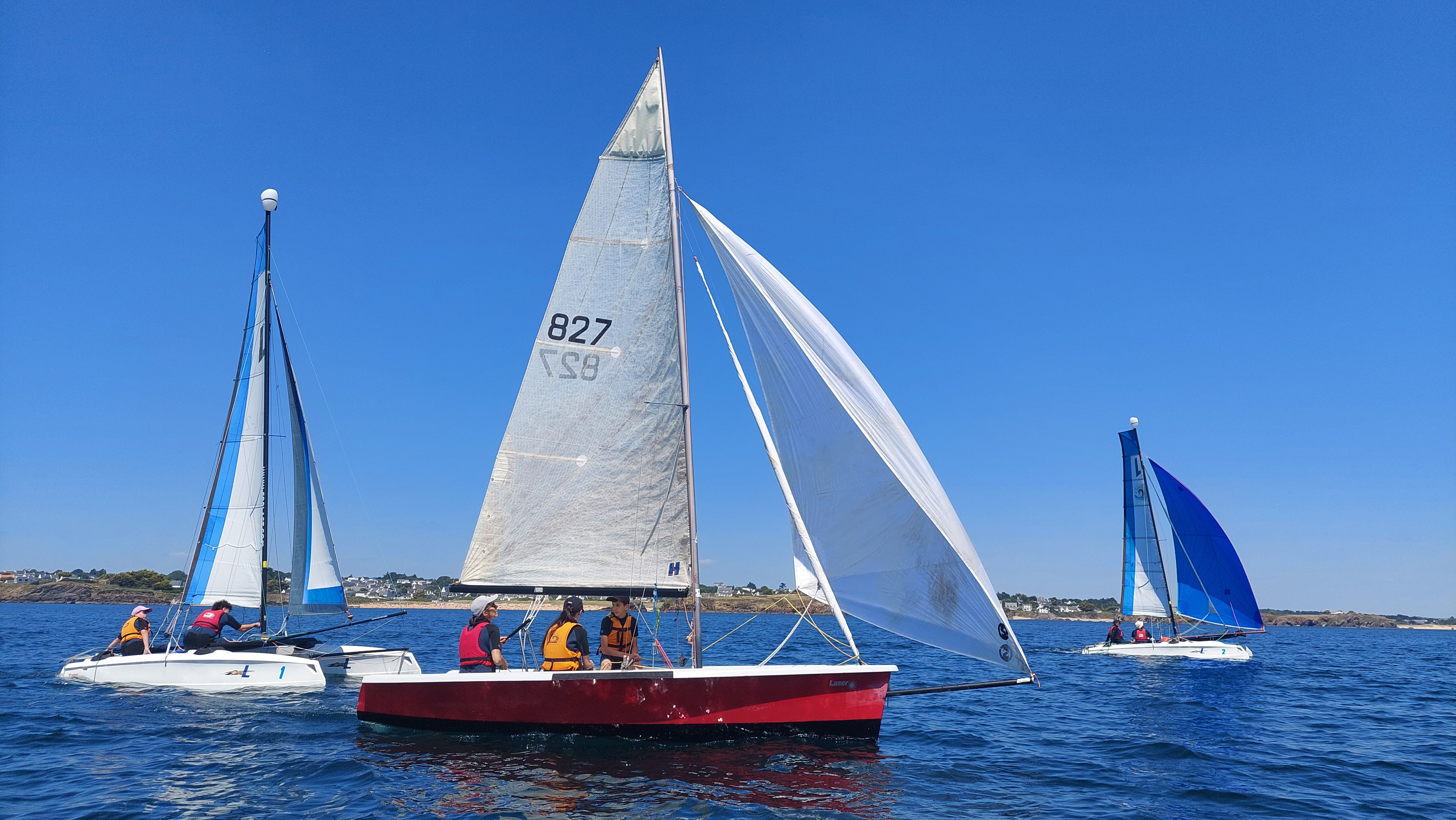 An exceptional site, an extraordinary playground. Peaceful mornings Let the wind carry you along the coast to the translucent waters of the Marquesas Islands. Gently learn the basics of sailing. Discover the sea, the boats and feel the sea breeze. Fun-filled afternoons Come and tame the ocean swell and try your hand at some magical surfing on a catamaran or dinghy. Abseil or trapeze, tack at full speed, take to the waves and let the scenery roll by. During the holidays : Courses from Monday to Thursday, full-day raids on Fridays and weekend sailing sessions on Fridays, Saturdays and Sunday afternoons. During the school year : School sailing cycles from cycle 3 to students. Sport and discovery sailing at weekends for adults and children. Information and registration with the Base Nautique du Pouldu: 02 56 46 00 36 - voile@clohars-carnoet.bzh