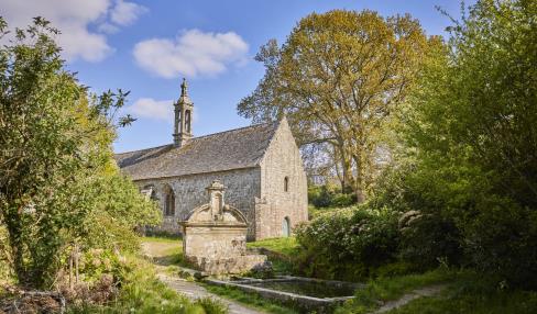 mise en place en 1480, illustre la Passion du Christ. À gauche du chœur se trouve le retable du Rosaire daté du XVIIe siècle. La chaire à prêcher polychrome, datée de 1707, raconte l’histoire de saint Ronan. À droite de l’église, la chapelle du Penity abrite le cénotaphe, tombeau vide, de saint Ronan. Ce remarquable ensemble a été édifié notamment grâce aux dons des ducs de Bretagne qui s’y rendaient en pèlerinage dans l’espoir de voir leur lignée