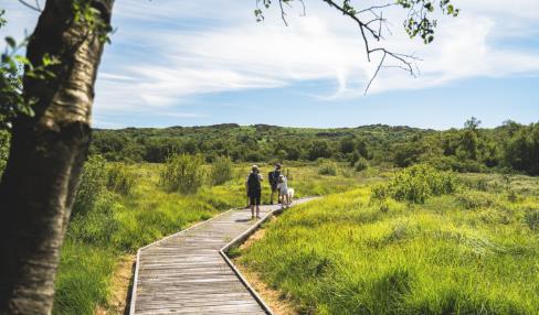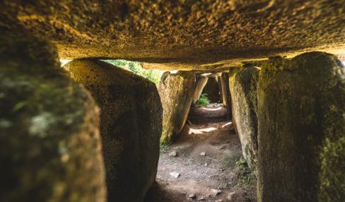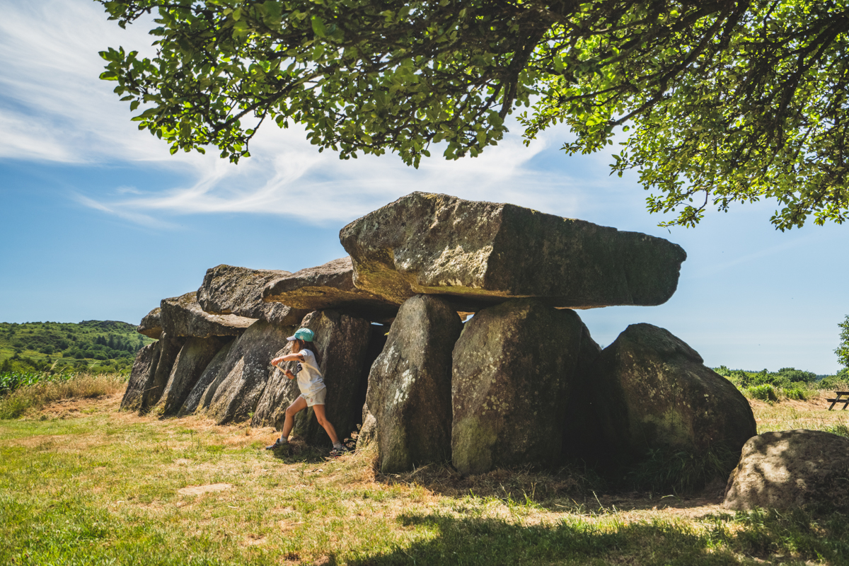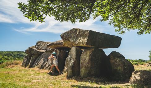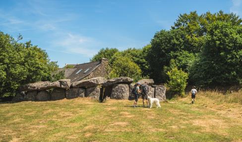 Depuis l’allée couverte du Mougau, site néolithique classé, récemment acquis par le Département du Finistère, entrez dans le sentier d’interprétation de la tourbière du Mougau. Ce parcours, en partie accessible aux personnes à mobilité réduite, traverse la tourbière et dévoile ses secrets : sphaignes, rossolis, damier de la succise… Lorsque le sentier débouche sur un chemin empierré, prenez à gauche, puis grimpez à travers la lande jusqu’au chemin des crêtes.