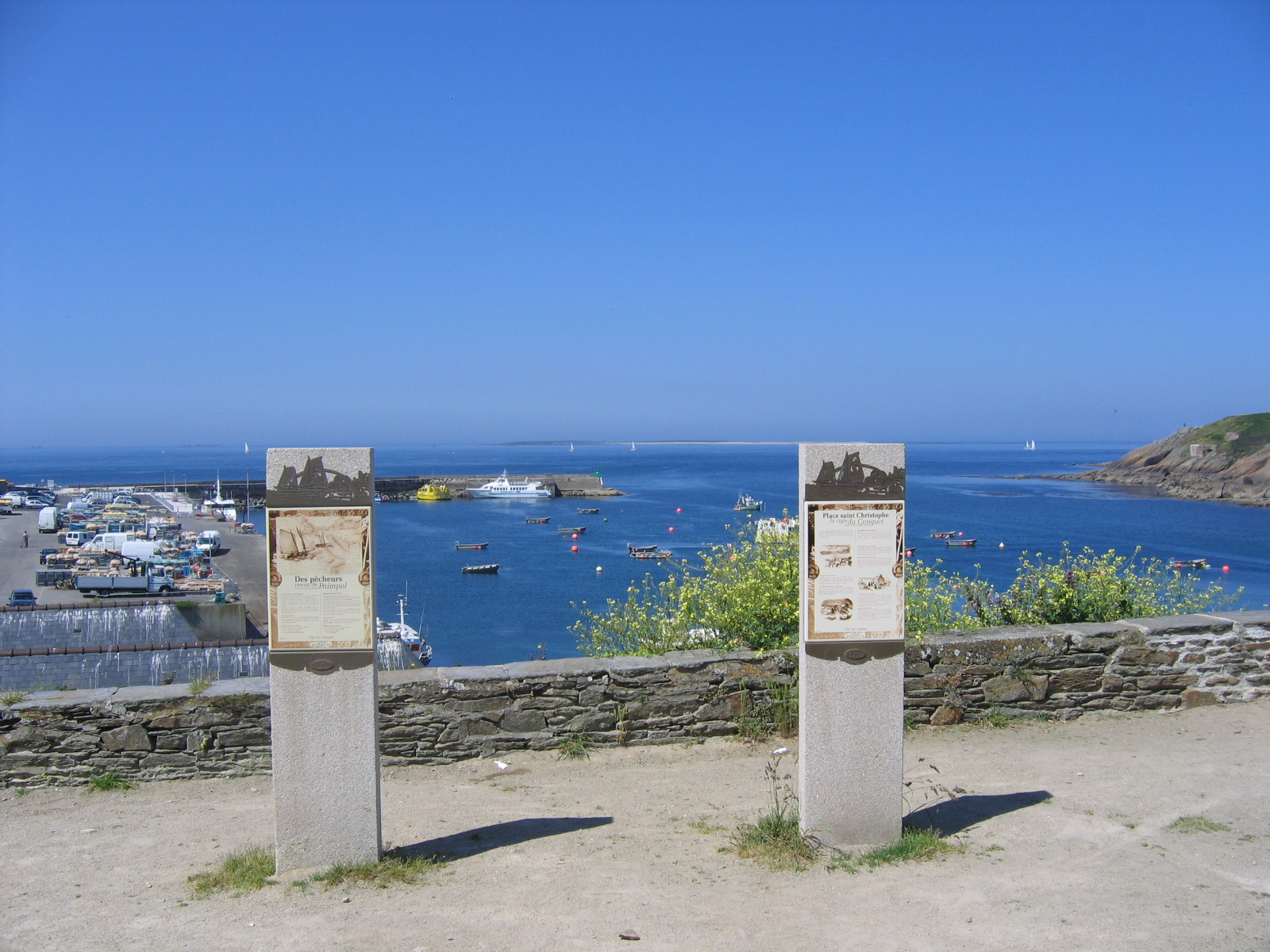 Depuis cette place, vous aurez une vue panoramique sur l’aber du Conquet. Cette dernière tient son nom de sa chapelle qui a été démolie pour vétusté vers 1855 et qui tenait elle-même son nom du saint protecteur des voyageurs et des marins.