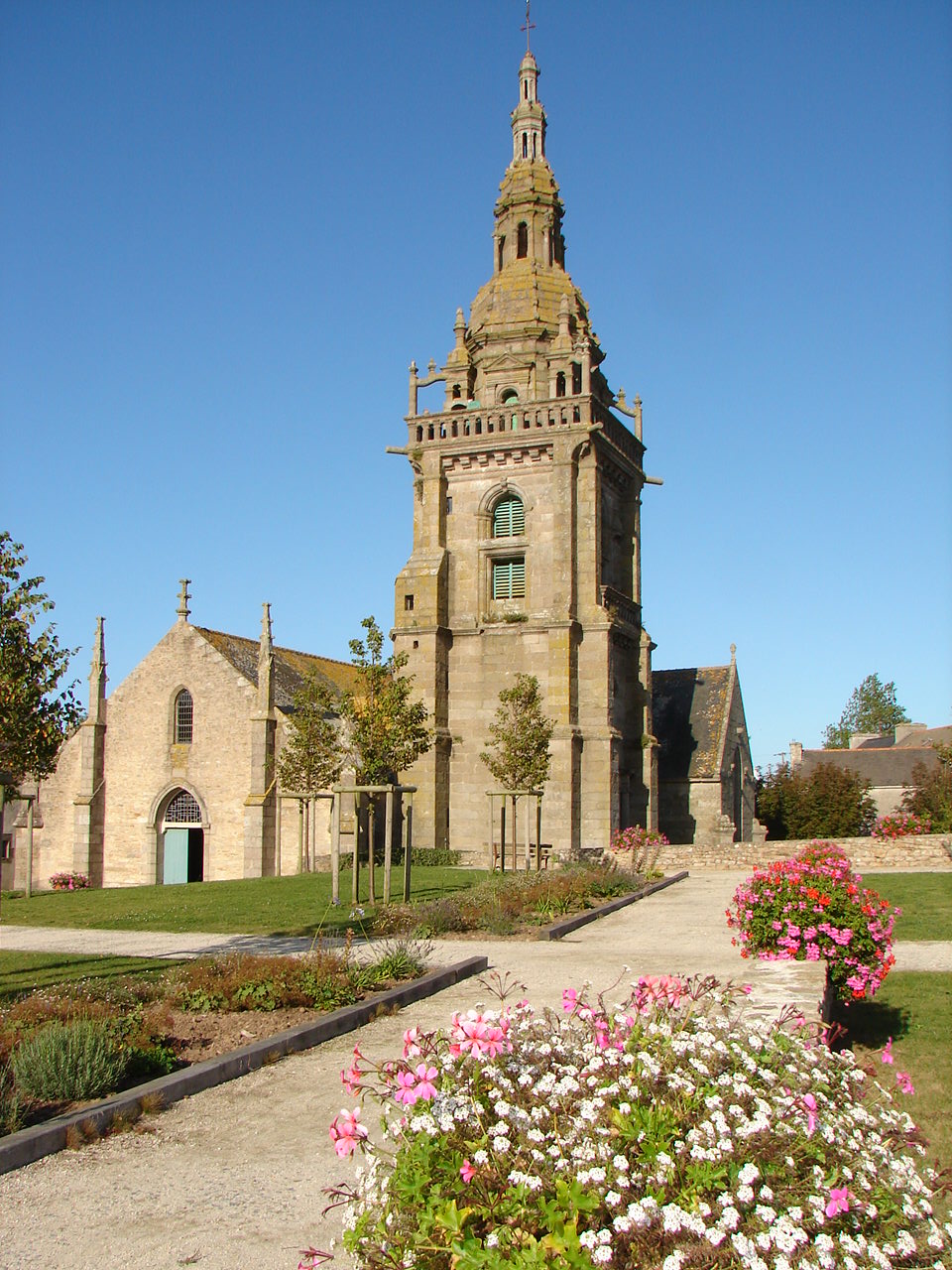A l’endroit où, victime d’une tromperie, Haude fut décapitée par son frère, s’éleva très tôt un modeste édifice religieux dédié aux deux saints. Les du Chastel le remplacèrent à partir du XVe siècle par la chapelle actuelle, dont la plus grande partie date du XVIe siècle. En 1518, la chapelle, dédiée à Notre Dame du Vrai Secours, fut élevée par les du Chastel au rang de collégiale.