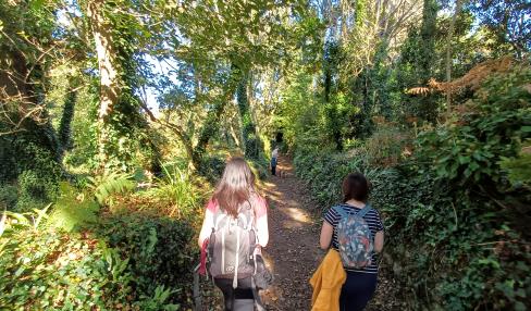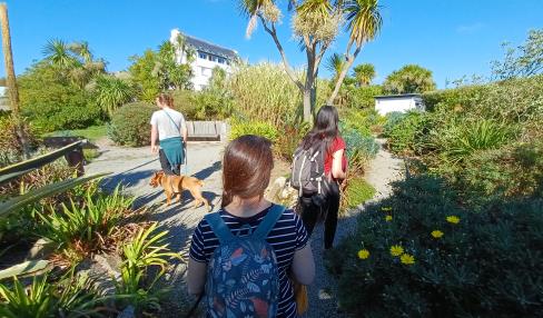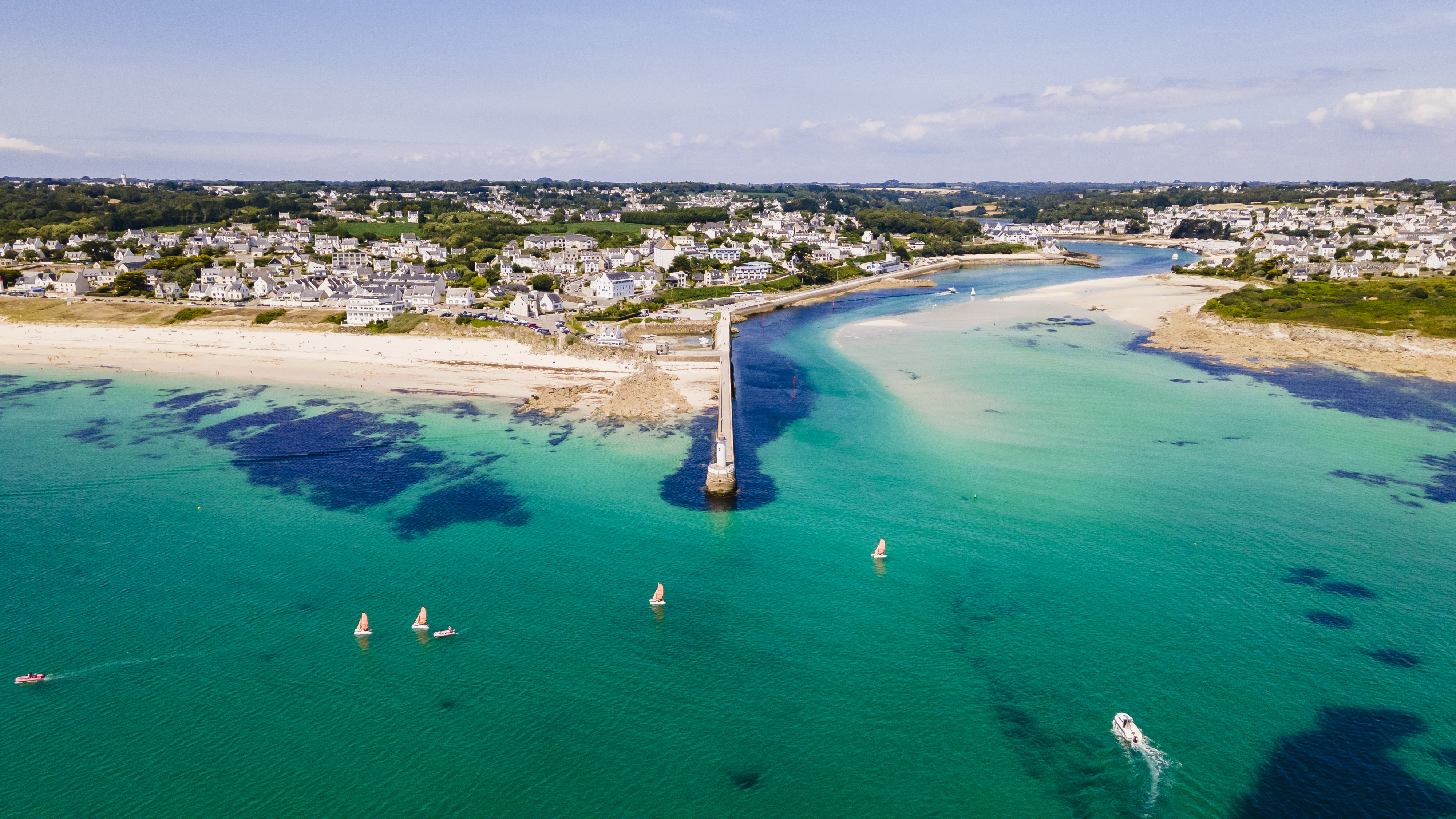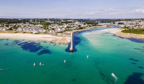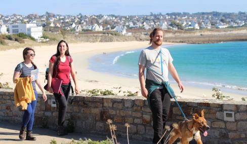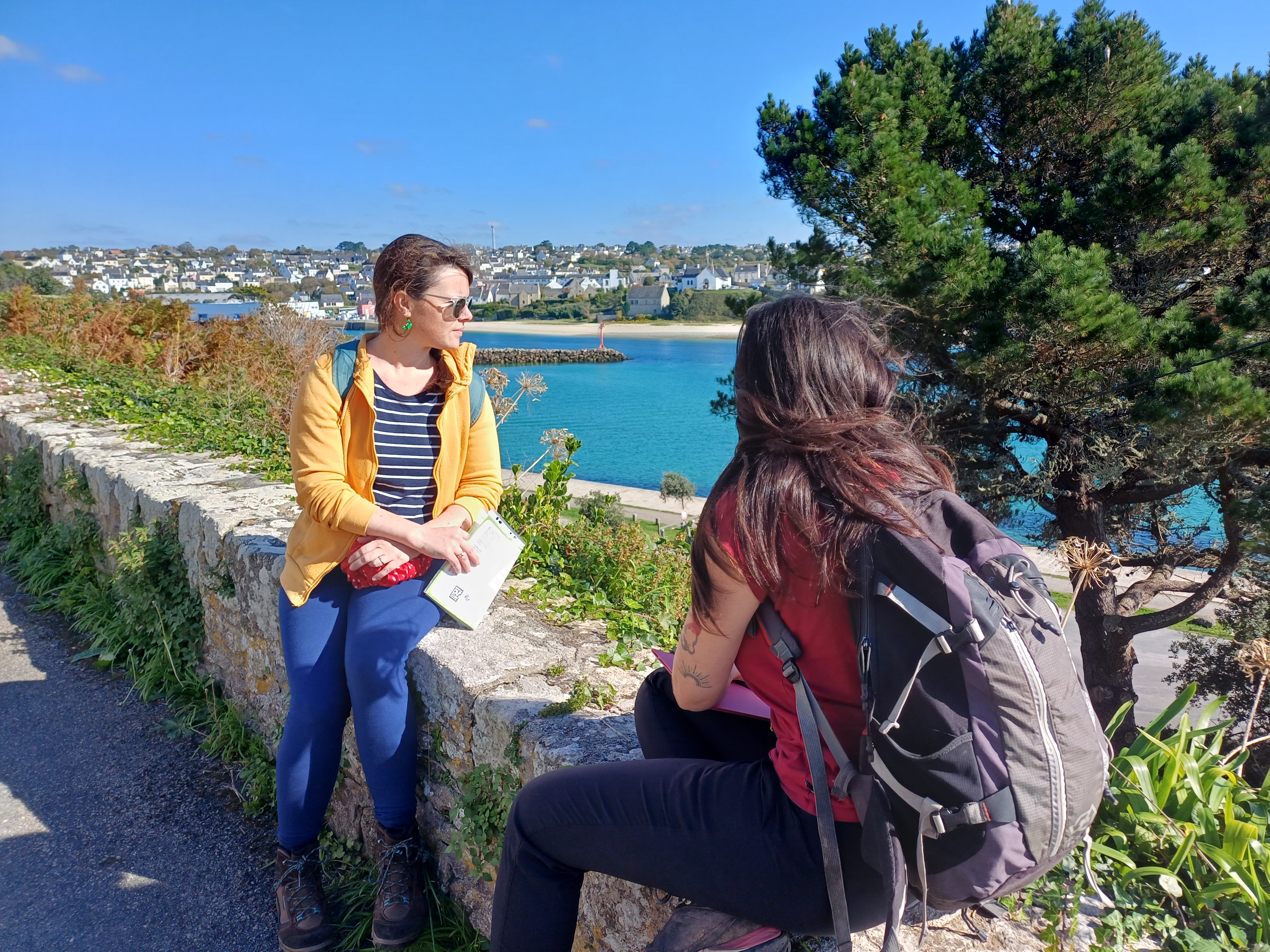 Du quai Jean-Jaurès, aller face à l'office de tourisme. Tourner à gauche, traverser la place de la République puis prendre la rue Louis Pasteur à gauche qui aboutit au quai Jean Jaurès. Se diriger plein sud par la rue Carnot, qui se prolonge par un raidillon étroit. Grimper à droite dans la rue du Maréchal Leclerc. Après 50m, virer à gauche dans le rue de l'Abbaye pour rejoindre la rue des Droits de l'Homme à droite. À l'intersection, bifurquer à gauche en restant rue des Droits de l'Homme jusqu'au carrefour. Ensuite, prendre la rue Jean Jacques Rousseau à droite sur 30m puis à gauche la Condorcet, au bout de laquelle s'offre un beau point de vue sur l'entrée du port d'Audierne. Prendre à droite la rue Kerguélen, tourner à gauche pour reprendre la rue Rousseau en longeant les viviers et traverser la rue Amiral-Guepratte pour atteindre le GR®34.