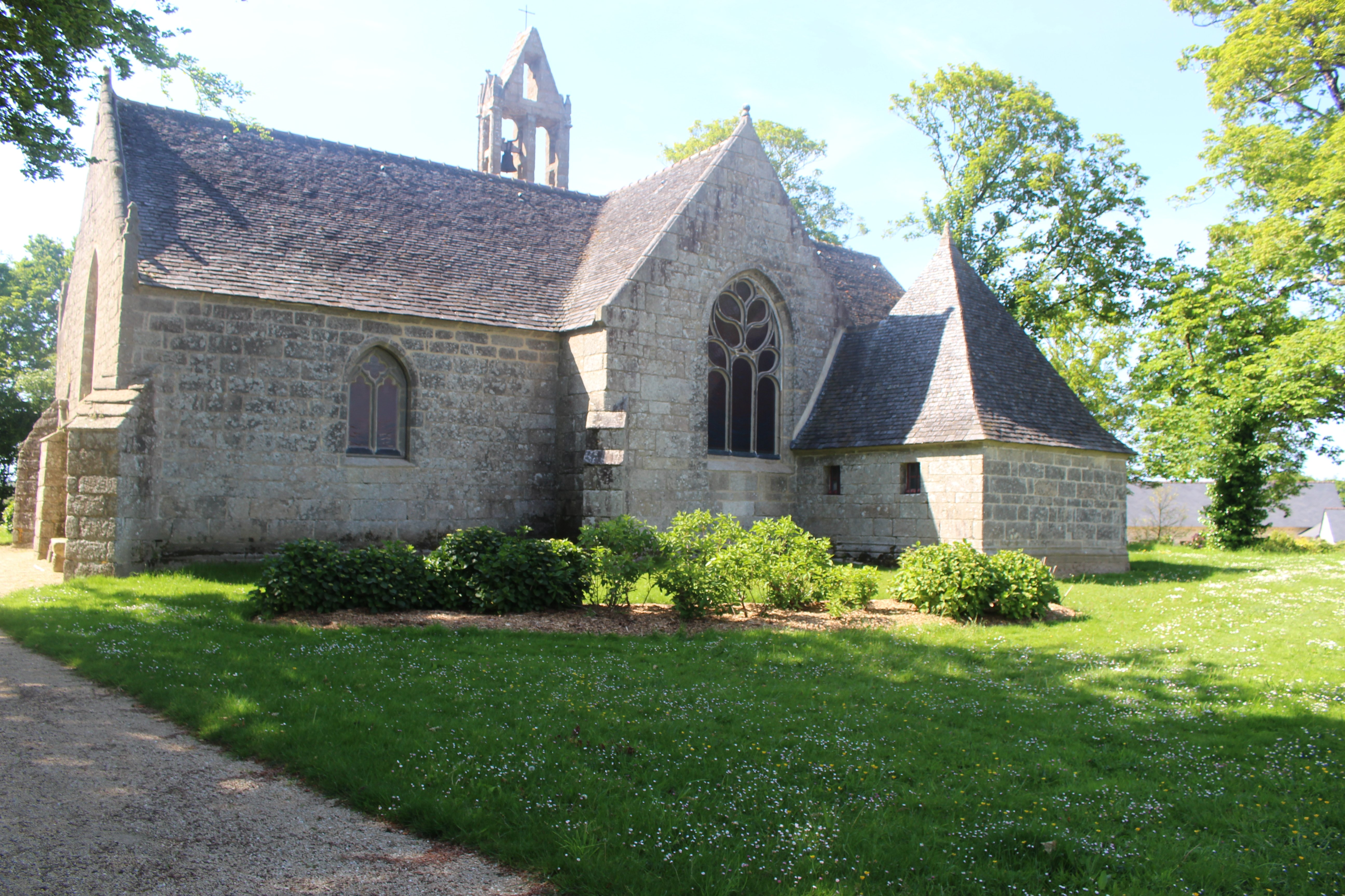 De style roman, la première chapelle fut construite au XIe siècle. A l'endroit où l'ermite Jaoua fut enterré, un tombeau aurait été élevé et, autour du tombeau, une première chapelle en bois. L'édifice actuel, long et bas, irrégulier et pittoresque, aurait été terminé au XVIe siècle. La chapelle a été restaurée, agrandie aux XIVe, XVe, et XVIe siècles. Vous découvrirez ici, un véritable enclos paroissial comprenant :