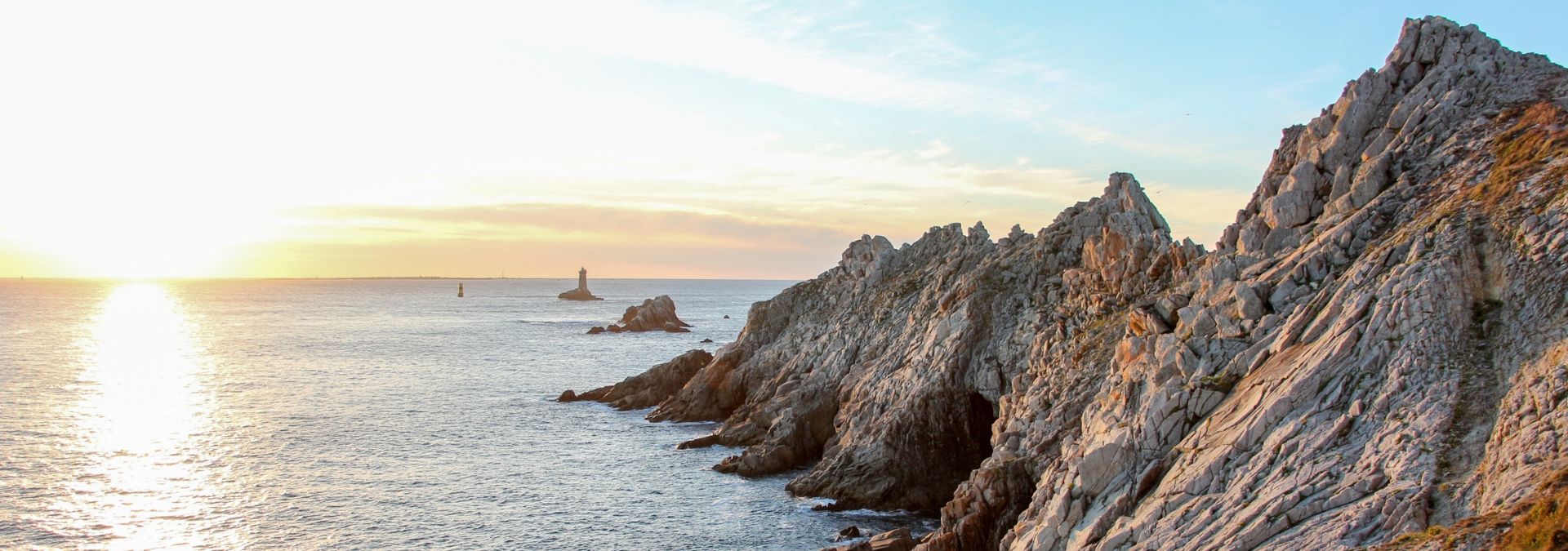 La Pointe du Raz en Cap Sizun, espace naturel départemental et Grand Site de France, s’est imposée comme un emblème. Ses falaises vertigineuses, battues par les courants marins, offrent un spectacle changeant au rythme des marées et des saisons. Véritable réserve de biodiversité, elle abrite de nombreuses espèces rares et protégées. Sa voisine, la Pointe du Van, rivalise de beauté : ses falaises habillées de landes, d’ajoncs, de bruyères et de fougères composent un panorama grandiose, surmonté par la chapelle Saint-They semblant défier les éléments. Au large, on aperçoit l’île de Sein, le phare de Tévennec ou encore celui de la Vieille. Un site incontournable le long du fameux GR®34.