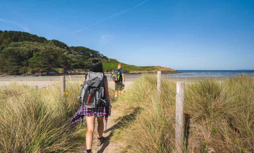 Ce parcours pédestre s’inspire de pratiques anciennes de marche à travers la Bretagne, formant une grande boucle reliant Quimper, Saint-Pol-de-Léon, Tréguier, Saint-Brieuc, Dol de Bretagne, Saint-Malo, Rennes, Nantes et Vannes. L’itinérance le long des chemins de Mon Tro Breizh® en Finistère se fait à votre guise. Vous pourrez ainsi choisir de randonner sur le chemin principal (le « hent ») ou, selon vos envies, de choisir un détour de quelques kilomètres pour découvrir un site d’intérêt (en empruntant la « ribin »). Des variantes vous sont en effet proposées. À vous de choisir ! Pour vous accompagner, Hieck, Klervie ou encore Ollig seront de bon conseil !
