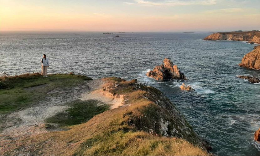 L’Office de Tourisme vous propose cette hiver une balade iodée sur le GR®34 de 10 km (réservé aux marcheurs confirmés, à éviter en cas de vertige) : du port du Rosmeur à la plage de Trezmalaouen, au départ du pittoresque port du Rosmeur, cœur vivant de Douarnenez jusqu’à la plage de Trezmalaouen à Kerlaz. Entre falaises escarpées, prairies maritimes, plages infinies et vue imprenable sur la baie, cette portion du sentier offre un concentré du Finistère ! Vous traverserez notamment le site naturel des Plomarc’h, havre de nature et de patrimoine. Pour prolonger l’expérience douarneniste, ne manquez pas les « Gras de Douarnenez », le plus grand carnaval breton, haut en couleur et en musique ! Rendez-vous du 14 au 18 février 2026 pour vivre cette fête unique qui anime la ville depuis 1835. Avant de repartir, impossible de quitter Douarnenez sans succomber à son trésor gourmand : le kouign-amann, croustillant et fondant, inventé « ici même » ! Installez-vous face au port et savourez ce pur moment de bonheur breton — l’étape la plus douce et la plus beurrée ! Enfin, laissez-vous inspirer par l’exposition « À Terre en Mer, les îles » de Michel Thersiquel — un hommage poétique à la beauté des rivages finistériens.