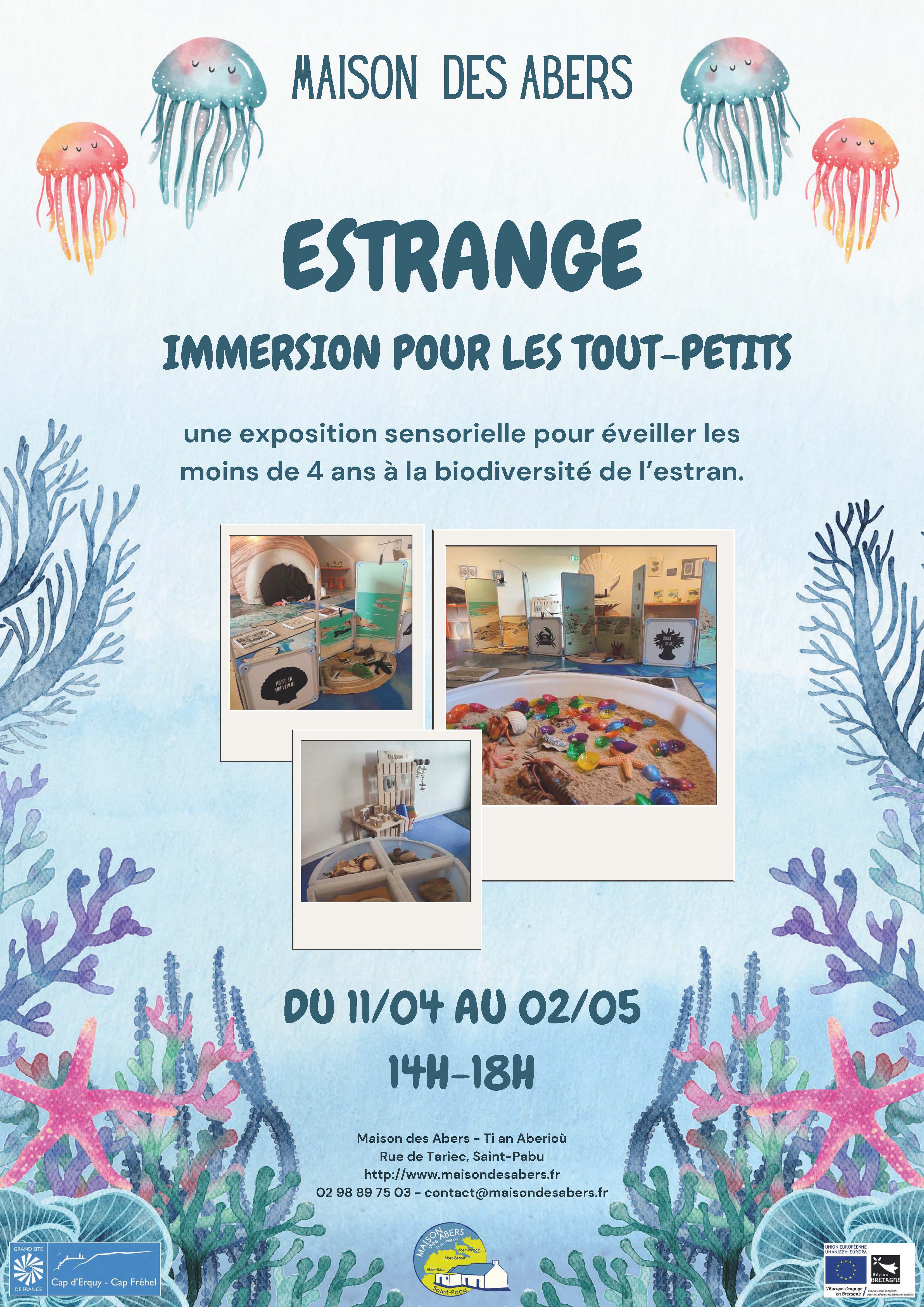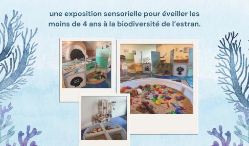 une exposition sensorielle pour éveiller les moins de 4 ans à la biodiversité de l’estran. Découvrez le littoral à hauteur d’enfant à travers 5 modules immersifs, ludiques, accessibles et mobiles. Un espace écoute et lectures, un parcours pieds nus, un bulot géant avec des surprises dedans, un coin patouille et un mur sonore et des jeux autour de la biodiversité (pêche à la ligne etc. ). Apprendre et découvrir en s’amusant, au chaud !